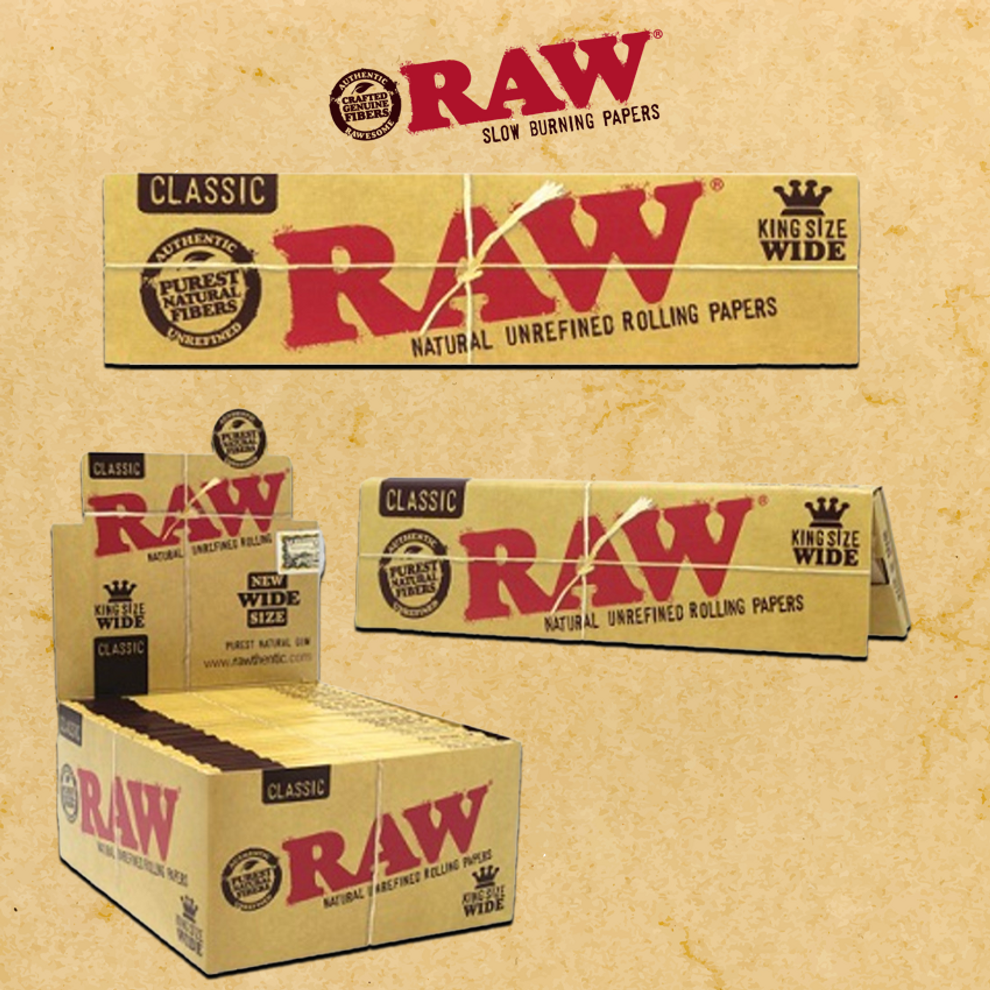 RAW Classic King Size Wide Slow Burning Classic Papers 50 Packs per box 33 leaves per pack